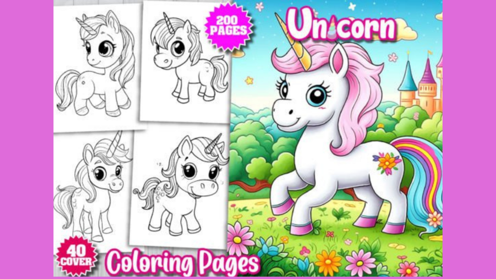 200 adorable illustrations featuring cute unicorns, exclusively crafted for kids to enjoy coloring.